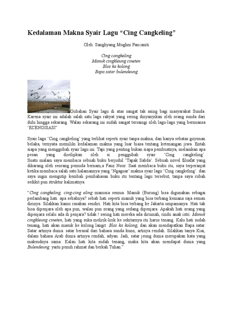 Cing cangkeling manuk cingkleung cindeten. Kesan yang didapatkan saat mendengarkan lagu cing cangkeling adalah …. Dan lagu cing cangkeling ini merupakan salah satu lagu kakawihan yang cukup populer di jawa barat, di artikel ini mari kita ulas mengenai kesan atau makna arti lirik syair lagu cingcangkeling, seperti kesan yang didapatkan pada saat mendengarkan lagu cing cangkeling ini, dikengkapi juga not angka lagu berupa file pdfnya. Academia.edu is a platform for academics to share research papers. Menurut sanghyang mughni pancaniti, seorang penulis kebudayaan sunda, lagu cingcangkeling merupakan lagu yang memiliki pesan, amanat atau kesan moral dan religius yang tinggi. Soal cpns twk dan kunci jawaban revisi 2021 kumpulan buku soal soal kunci jawaban lulus cpns 2020 kherysuryawan id. Arti lirik atau syair lagu kesan yang didapatkan pada saat mendengarkan lagu ini. Waktu ujian skd berbasis komputer atau yang lebih sering disebut computer assisted test cat adalah 90 menit. Kesan yang didapatkan pada saat mendengarkan lagu ini : Pembahasan kunci jawaban soal tema 6 kelas 5 sd halaman 57. Lagu ini dinyanyikan denga nada yang riang gembira. Ayo bernyanyi sebelumnya, kamu telah mengetahui bahwa beberapa lagu daerah dimainkan dalam tangga nada pentatonis yaitu slendro dan pelog. Menurut sanghyang mughni pancaniti seorang penulis kebudayaan sunda lagu cingcangkeling merupakan lagu yang memiliki pesan amanat atau kesan moral dan religius yang tinggi.